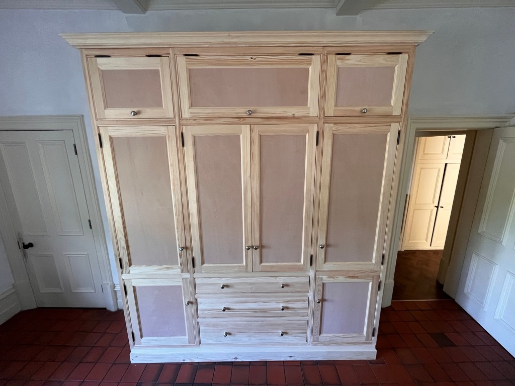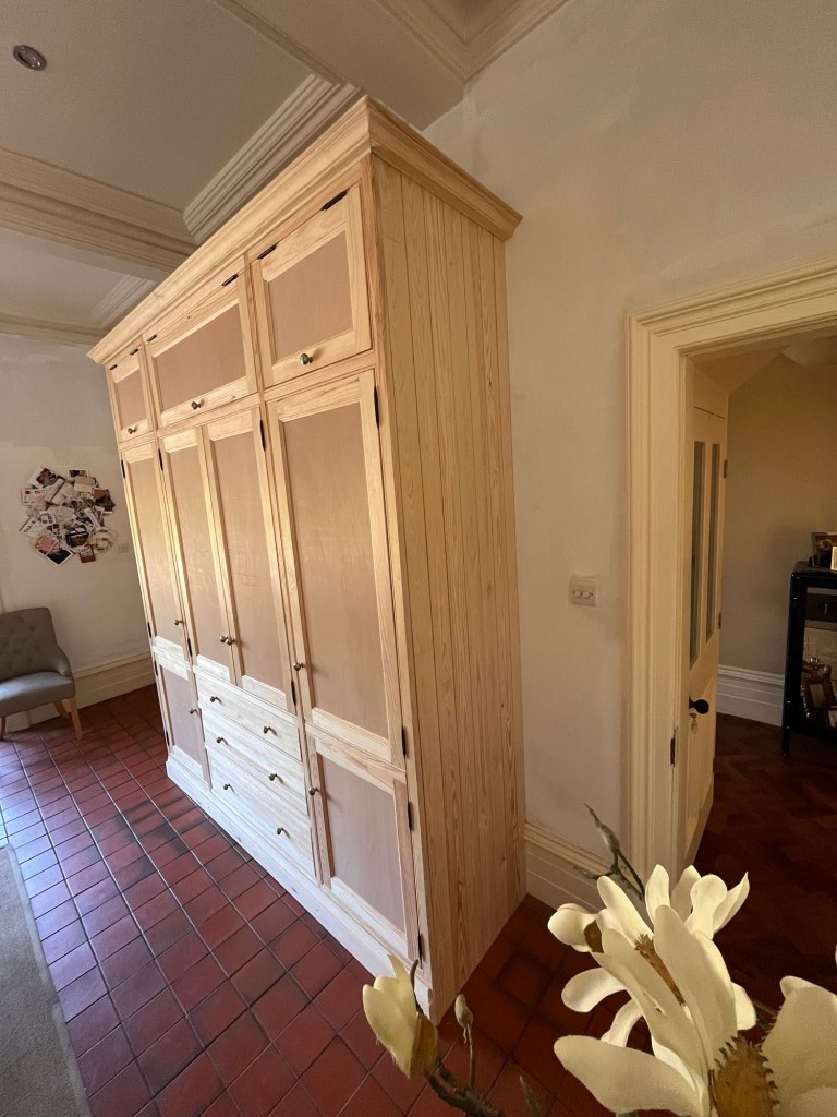 From measurements of the cabinet as well as detailed notes of the design features of the current kitchen, we designed and built the face frame and doors for each specific area. Constructed in the workshop, this large piece was dismantled and rebuilt and fitted onsite with little room for error.